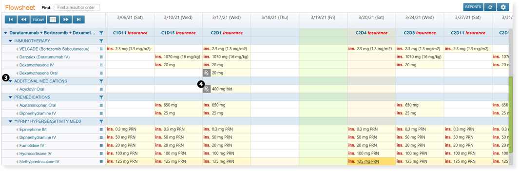 If the regimen did not contain a **PRN HYPERSENSTIVITY MED section, the Additional Medications section will be added to the bottom of the regimen (see callouts 3 and 4).