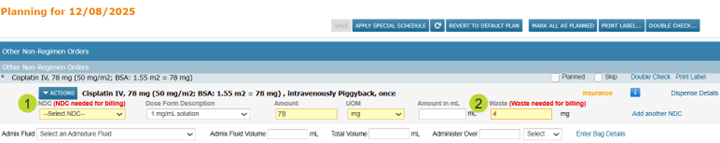 - Mark which drugs require NDC and waste documentation.