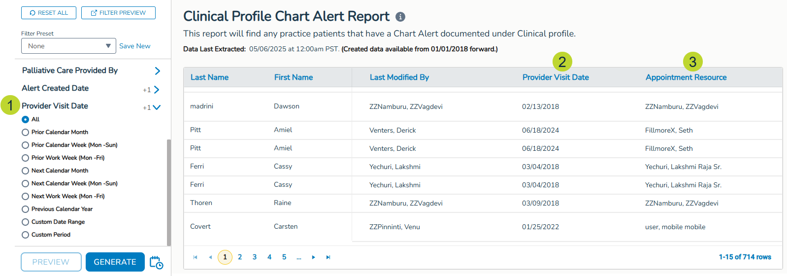 Appointment data added to Clinical Profile Chart Alert report Copied