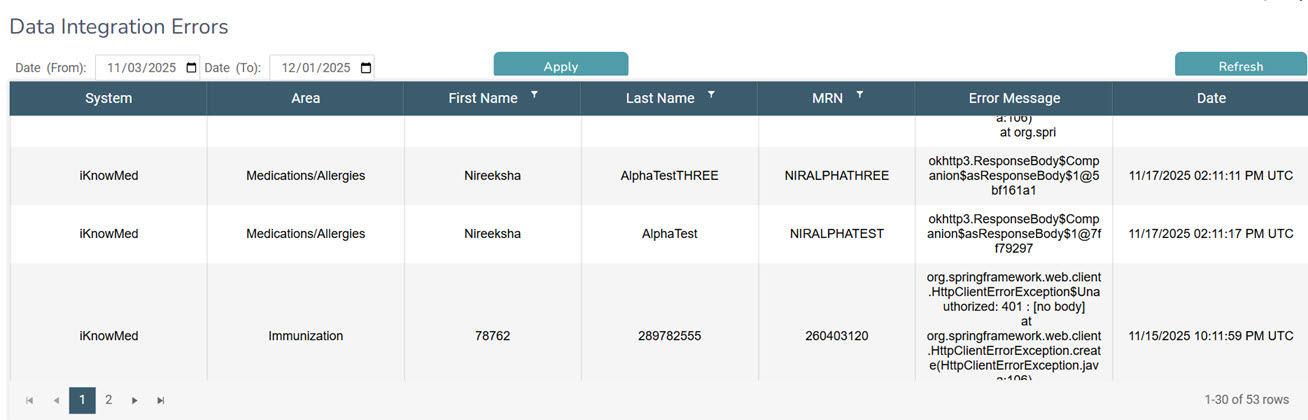This enhanced visibility helps you identify and resolve integration issues more quickly, ensuring patient charts remain complete and accurate. With this information, you can efficiently reenter missing data to maintain comprehensive patient records.