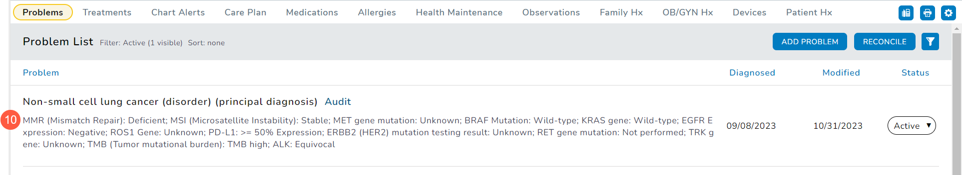 - The results will be displayed below the diagnosis on the Problems List (callout 10).