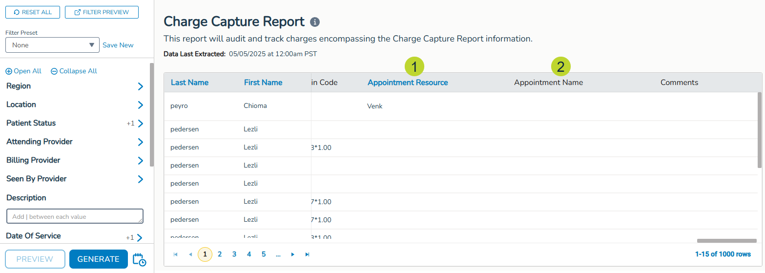 Columns for appointment data added to Charge Capture report Copied