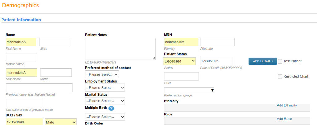 When a patient is marked as deceased in the Demographics tab of their iKnowMed Generation 2 chart, the system will automatically stop sending notifications to the patient or their caregivers.