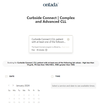 Upon clicking the Curbside Connection link, you will be directed to the booking page to schedule a connection appointment.