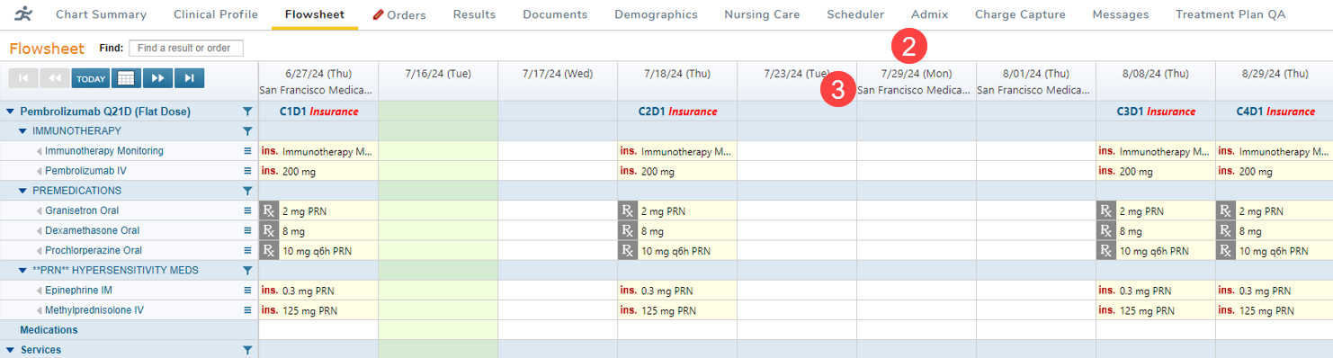 - Once enabled, the patient flowsheet will display a new column for upcoming appointments with no planned services (callout 2)