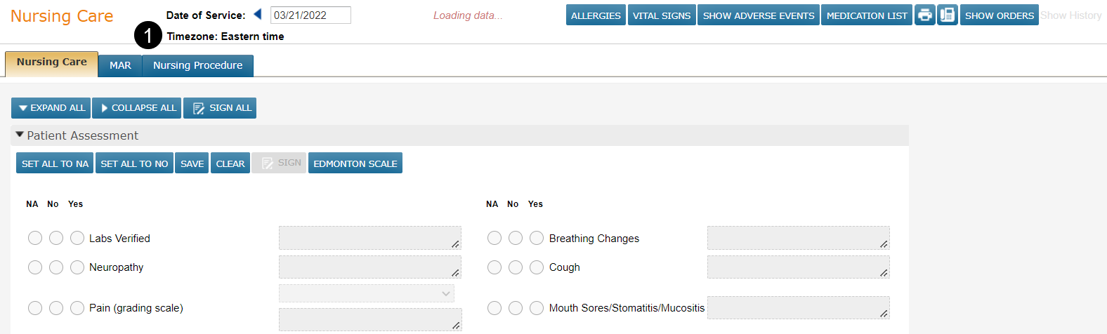 We removed ambiguity around the times shown on the Nursing tab by adding the time zone in the upper left section of the Nursing Care and MAR tabs. The time zone shown is based on the time zone of the computer/client used to log in to iKnowMed Generation 2.