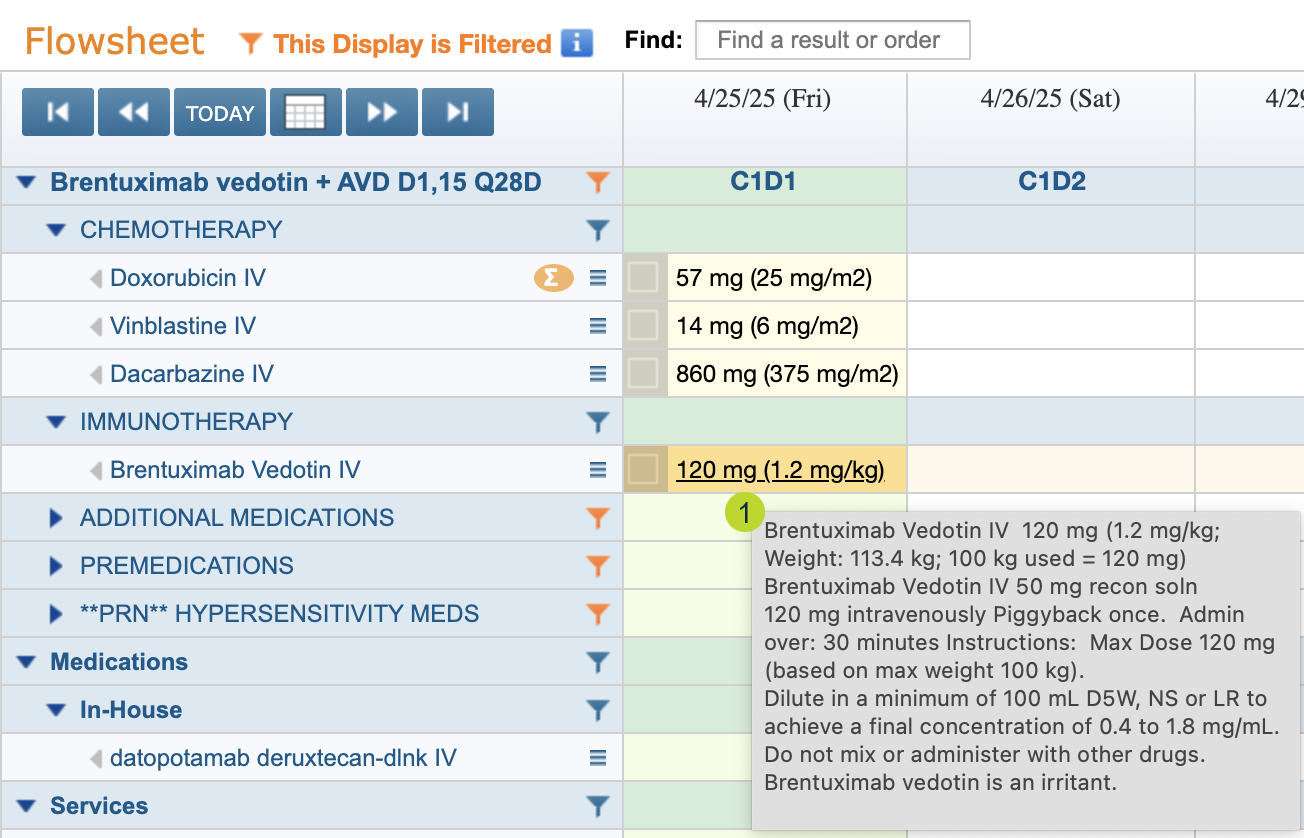 - Locate the regimen in the patient’s flowsheet and click on the order in the cell.