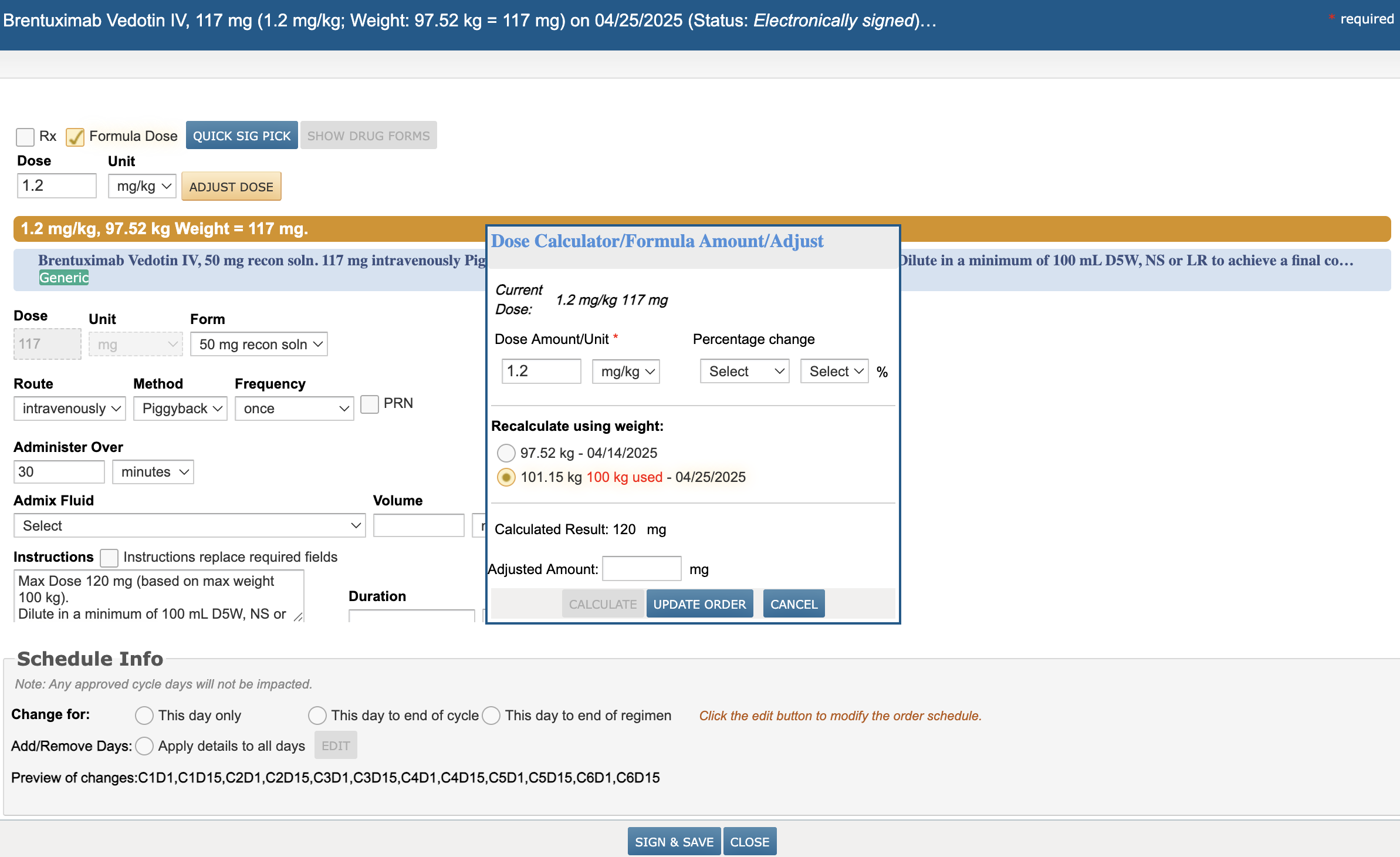 | Brentuximab Vedotin IV | Weight: 100 kg |