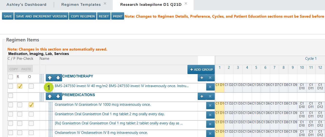 If your practice has created a custom regimen template with a drug listed above (including a custom version of the drug), an update to the regimen template is necessary to leverage this feature.