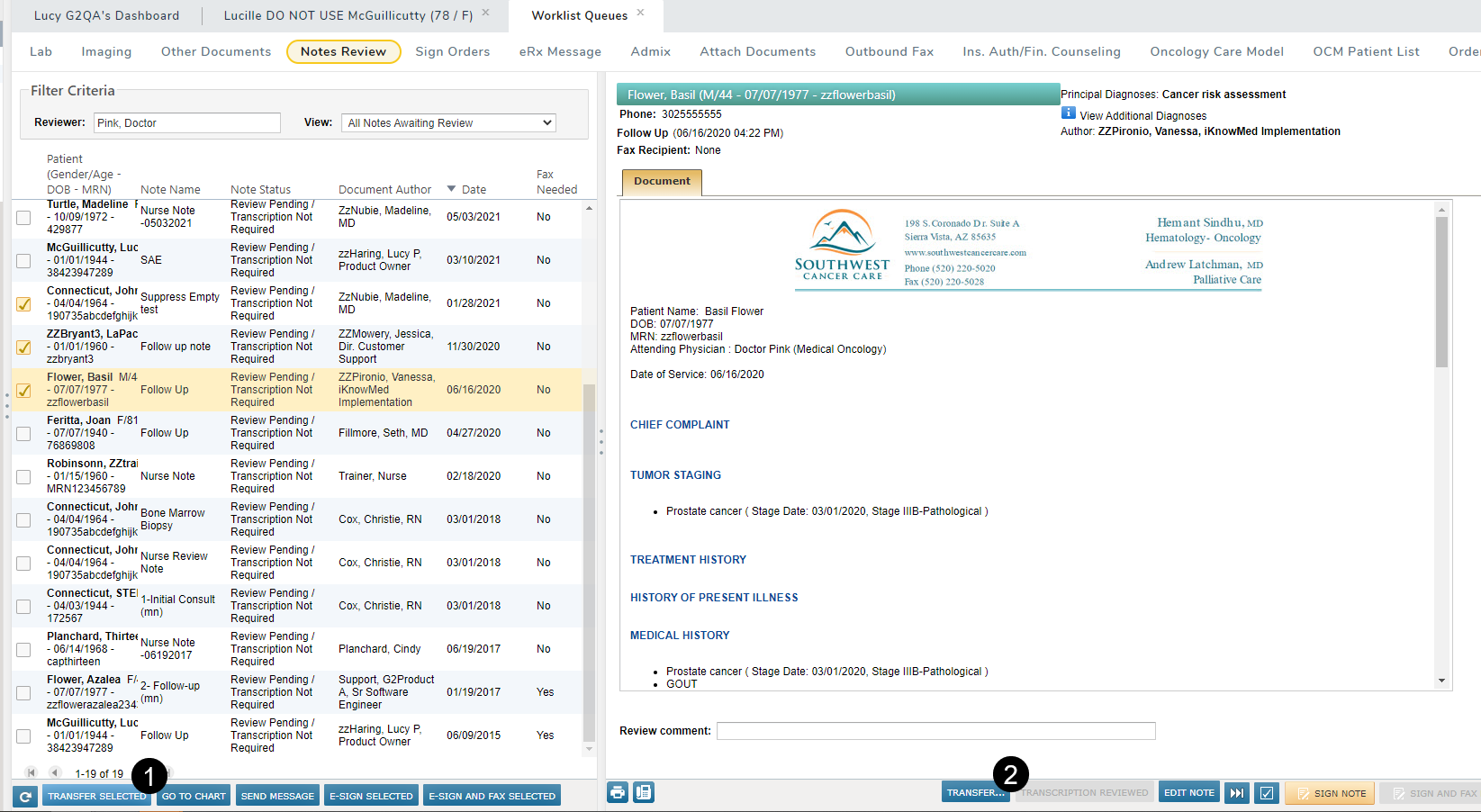 The Notes Review queue now supports the ability to transfer notes from one provider to another like the other worklist queues.
