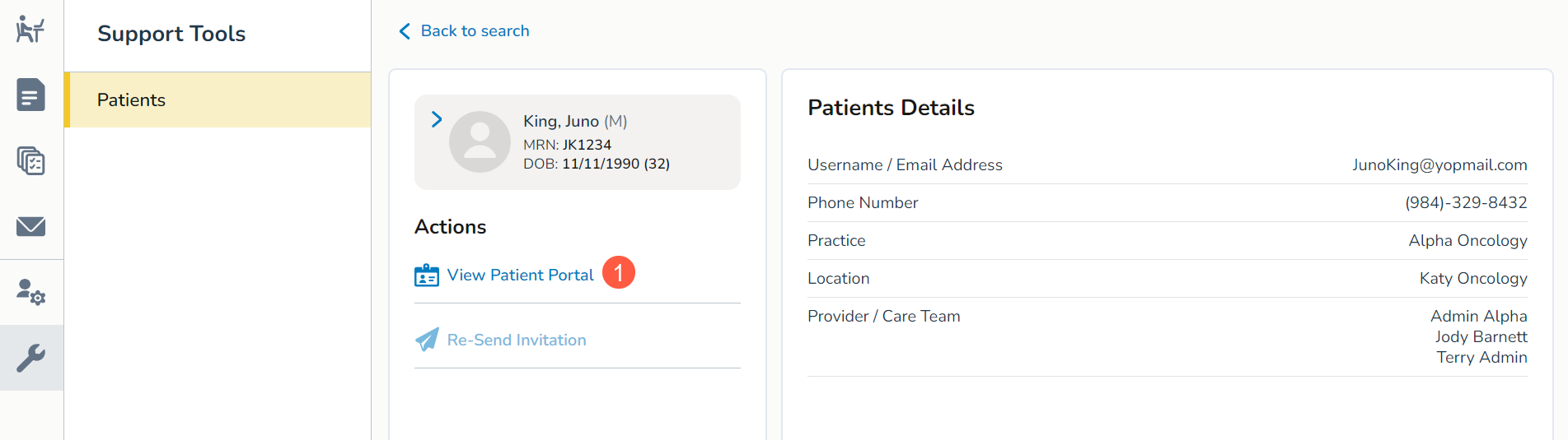 - Locate a patient and open their portal details.