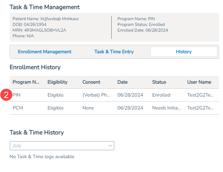 - The History section of the feature and the Task & Time will also be updated to include these new programs, allowing for comprehensive tracking of all program-related changes for each patient (callouts 2 and 3).