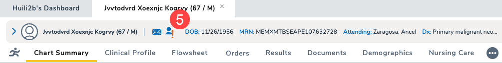 - When “No” is selected, a new icon will appear in the patient banner indicating that the patient “Needs an Initiation Visit” (callout 5).