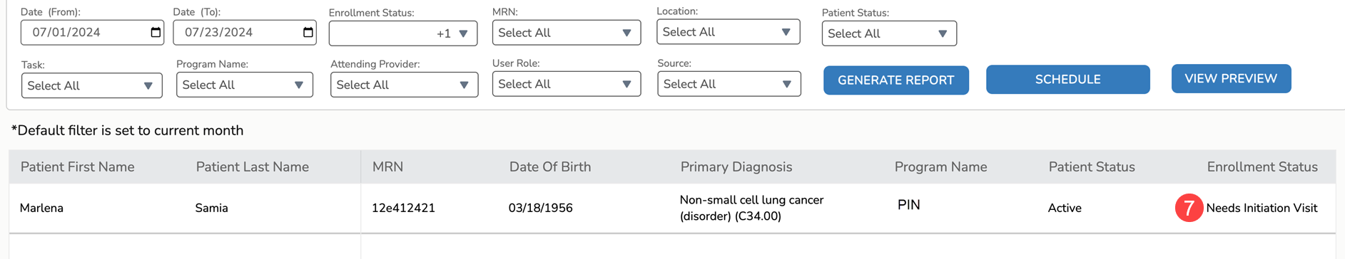 NOTE: Completing the “Initiation Visit Completed” step is mandatory for task and time documentation to be available. Patients must be considered enrolled for this documentation to be accessible.