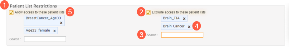 - To allow access to a patient list, follow these same steps under the Allow access to these patient lists option (callout 5).