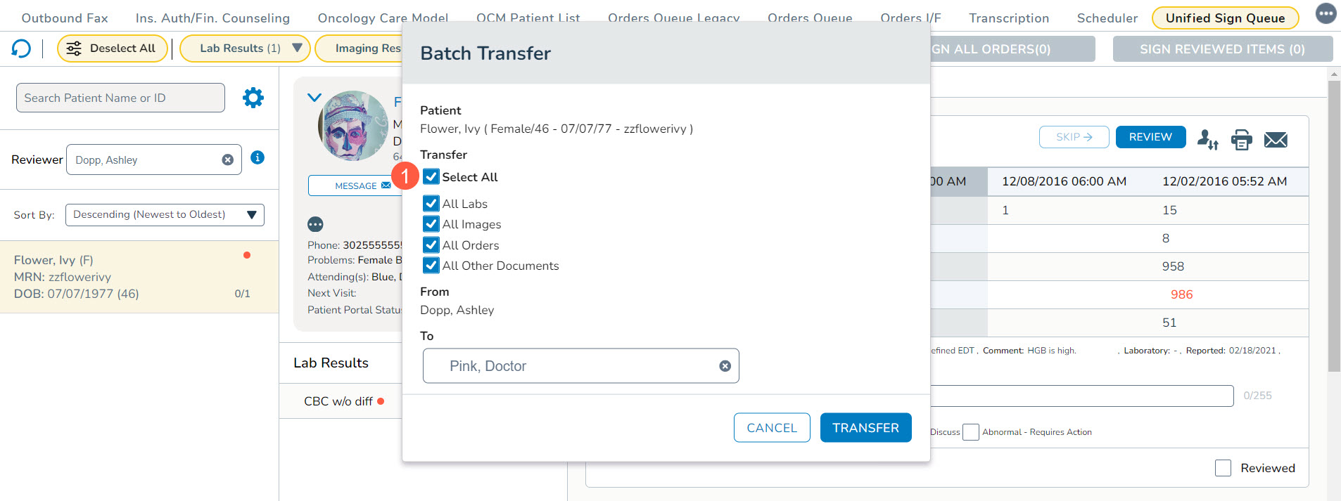 We added two new filtering options in the Lab Results section of the queue: Genomic Results and Results with Attachments. With these additions, users have more control over the results they wish to review and sign off on.