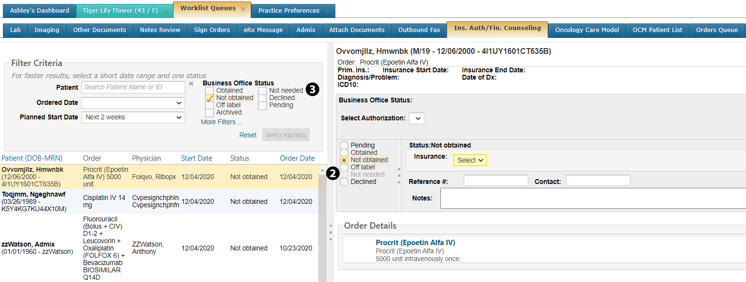 Now when working in the Ins. Auth/Fin. Counseling queue, the Not needed option will be unavailable for selection going forward (see callout 2).