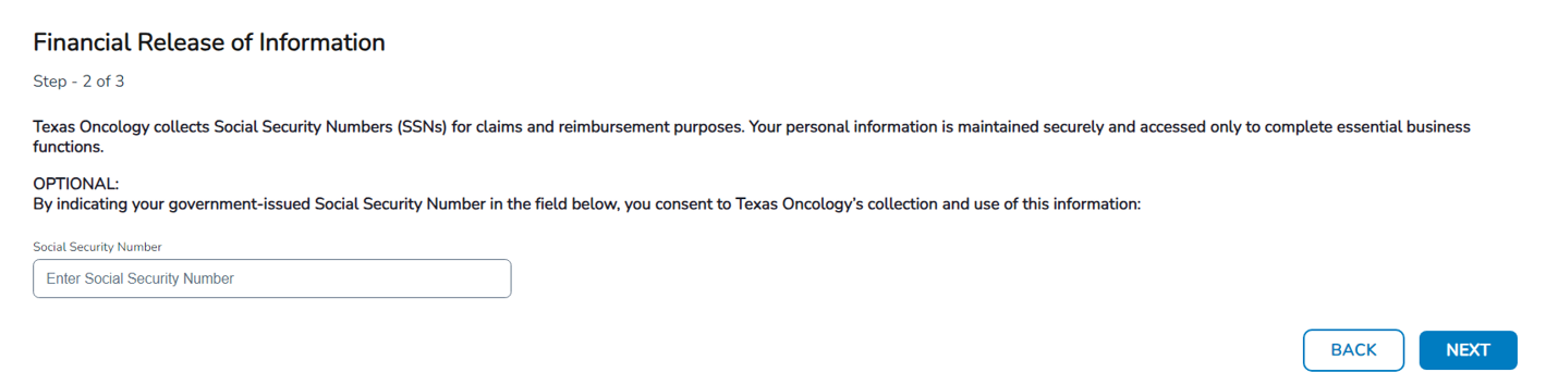 Step 2: Clarifying statement added regarding the collection of patient’s Social Security number.