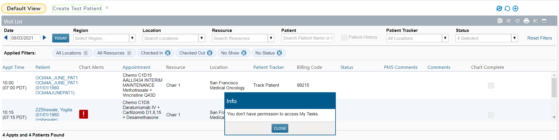 You will only see information that has a View option in Users > Permission. The table below provides a list of features with a View option. If you have a question about what permissions are specifically available to you, please contact your local practice administrator.