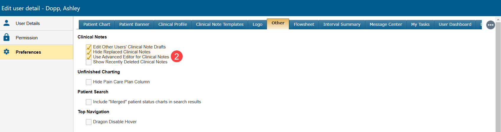 - Check the box next to Use Advanced Order Editor for Clinical Notes (callout 2).