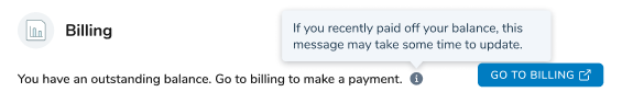 - When clicking the Go To Billing button, patients will be directed to their practice’s unique bill pay functionality. Each practice will have its own specific link configured so patients are always sent to the correct payment portal.
