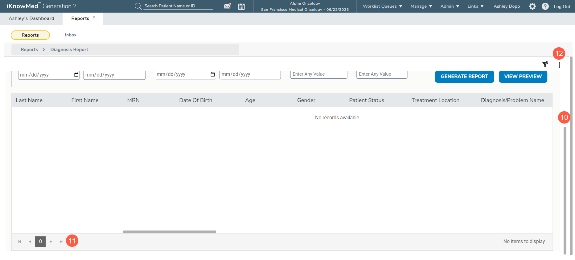 - When the report is complete, go back to iKnowMed and your reports Inbox (callout 13).