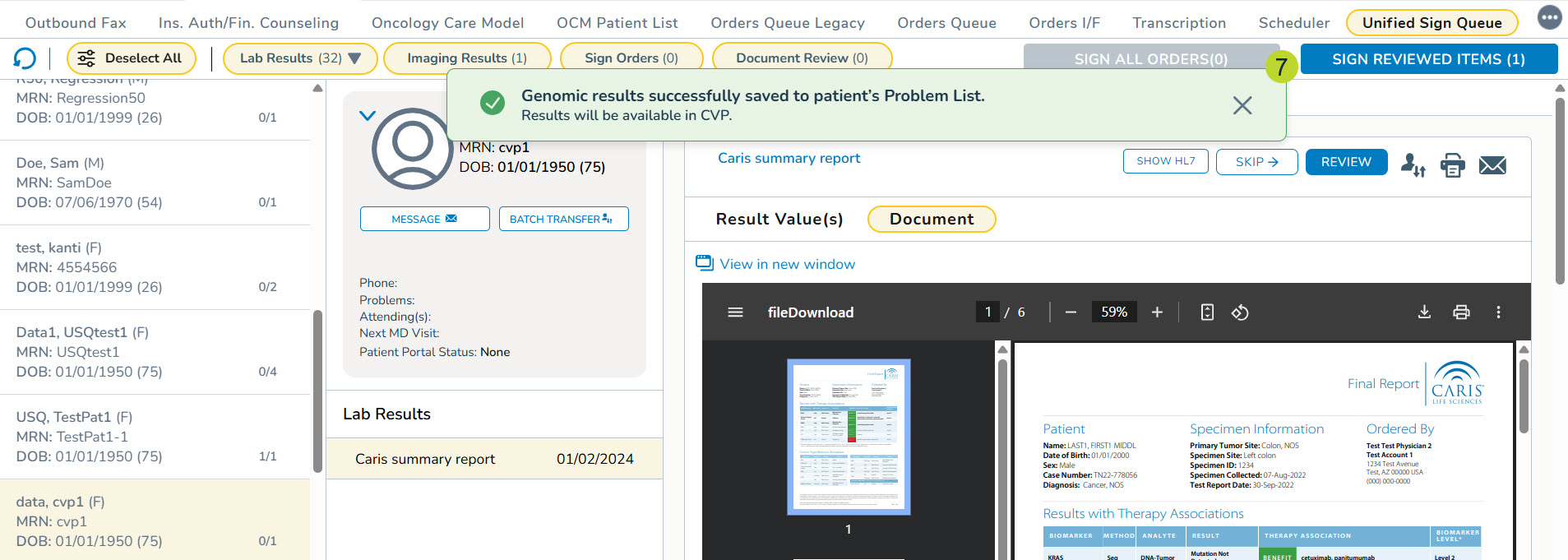 Additionally, mapping functionality is available in the Unified Sign Queue. This enhancement allows users to map molecular results while reviewing and signing lab results in the queue.