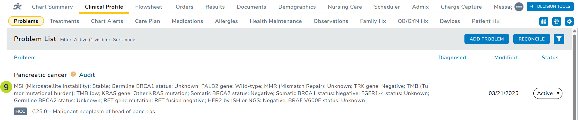 12. To view all results saved to the Problems tab, navigate to Clinical Profile > Problems.