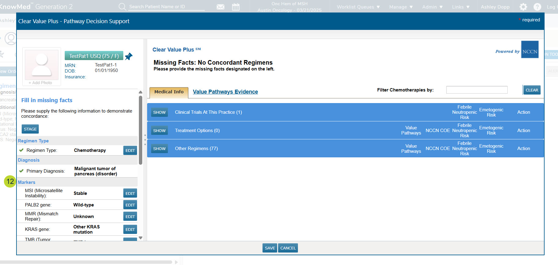 Note: This functionality is currently available to US Oncology Network practices, that also have agreements with both the Sara Cannon Research Institute and Genospace. If you have questions about access to this functionality, please contact your Ontada Technology Account Manager.