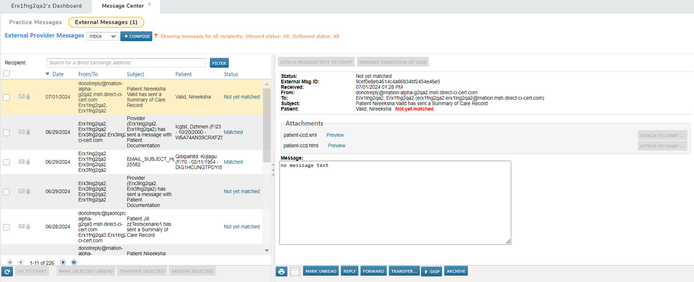 - If the provider uses iKnowMed, the message will appear in their Message Center > External Messages > Inbox.