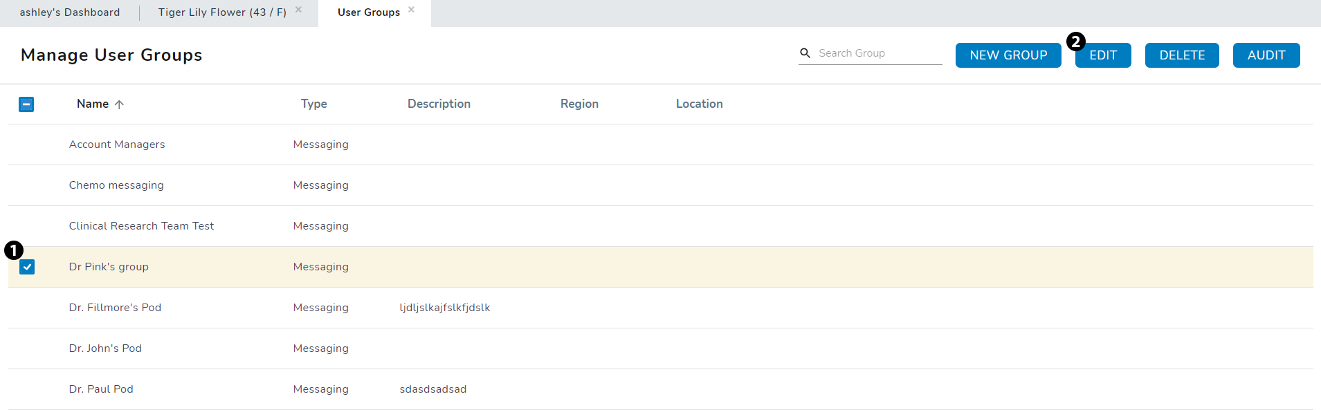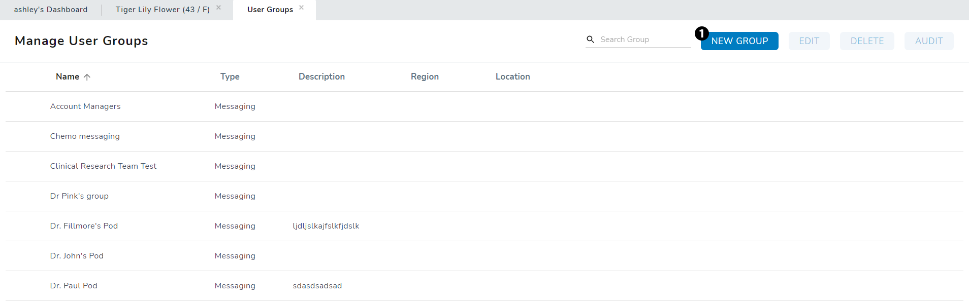 The new ADMIN > User Groups page will be prepopulated with all your practices’ previously created groups so that you can continue to maintain them.