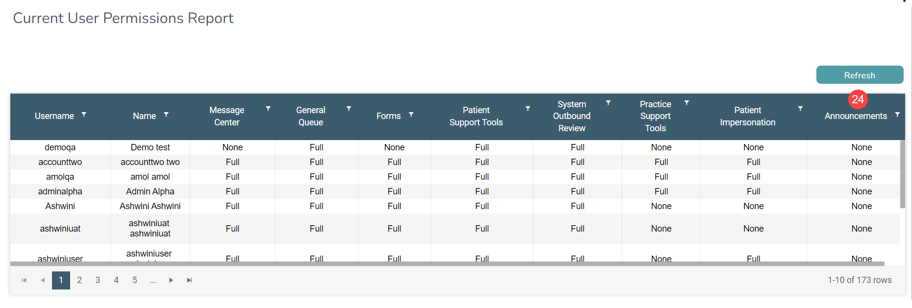 - Now includes an Announcements column to indicate which users can access this feature, improving visibility and permission management (callout 24).