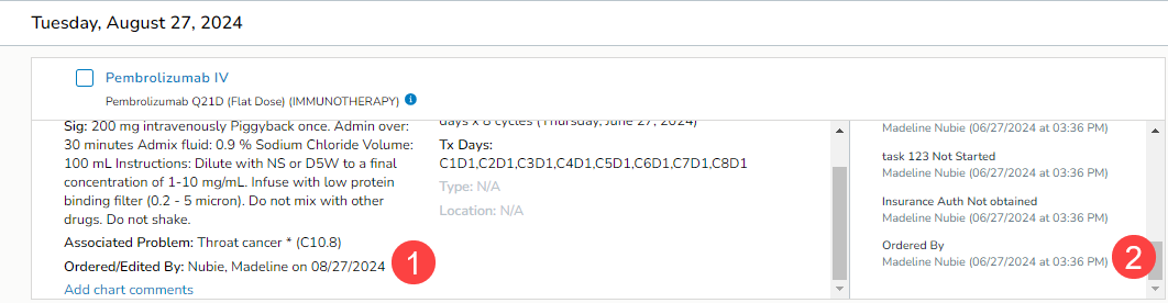 We’re updating the queue to display regimen orders based on the modification date rather than the original order date (callouts 1-2).