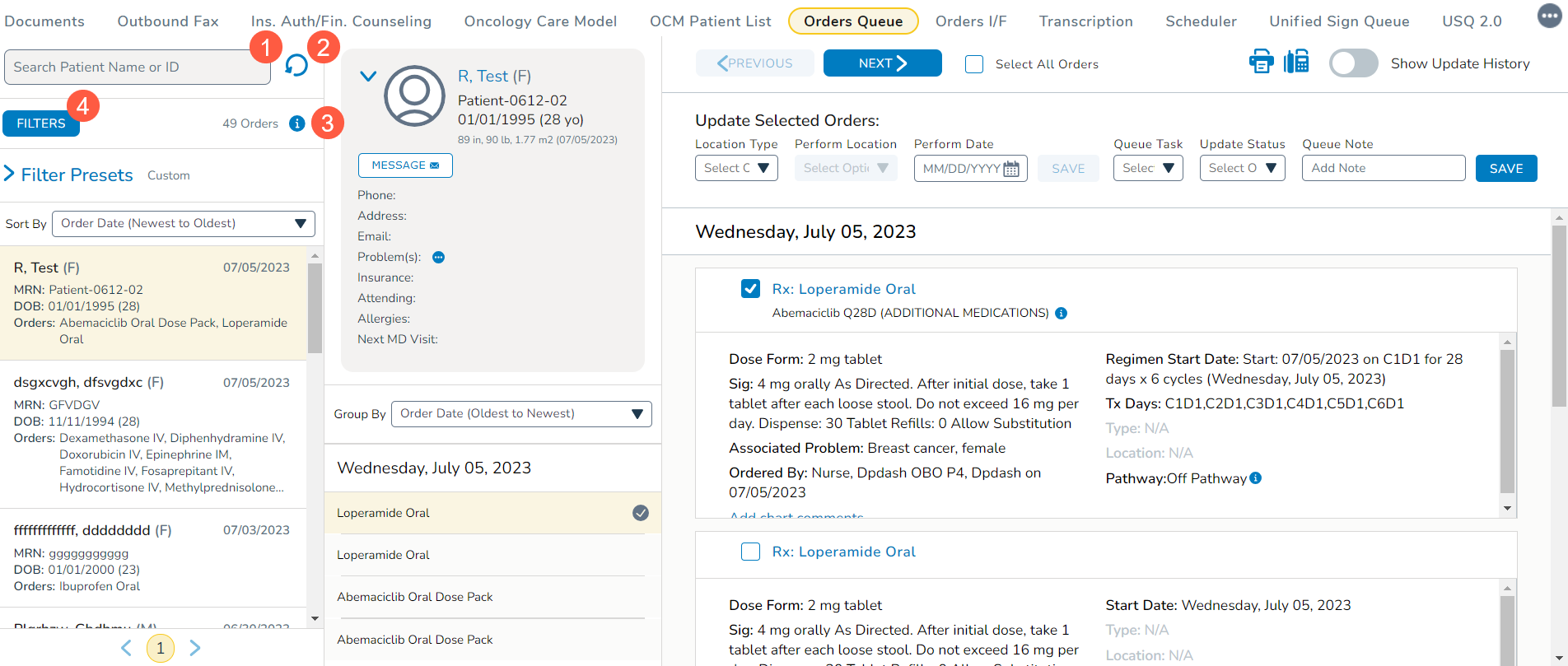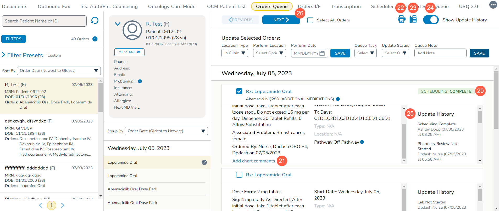 The new Orders Queue is more flexible and allows for the creation of role-based workflows – whether you’re a scheduler, nurse, pharmacist, or financial counselor. New status indicators and Update History section allow you to see where orders are in the process and the latest updates, when they were made, and by whom. This transparency makes it easier to track the order’s progress through completion.