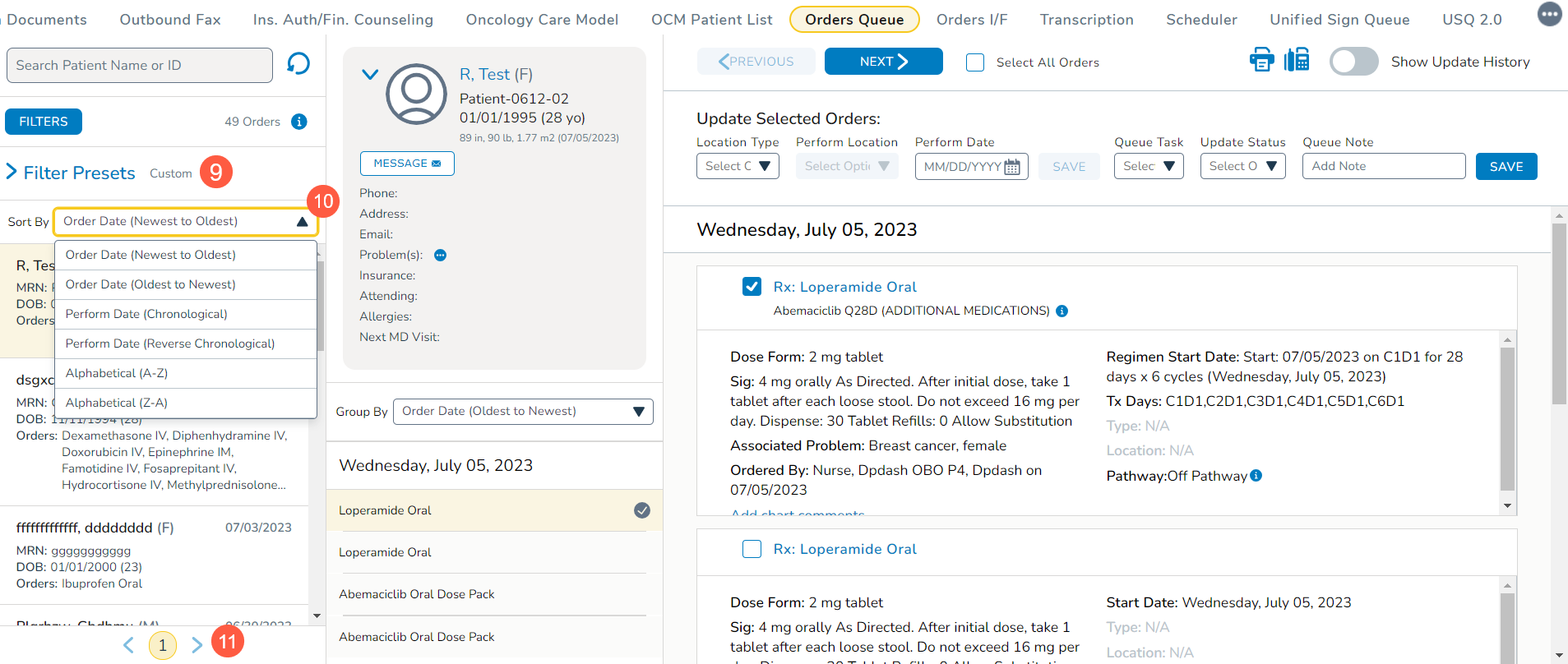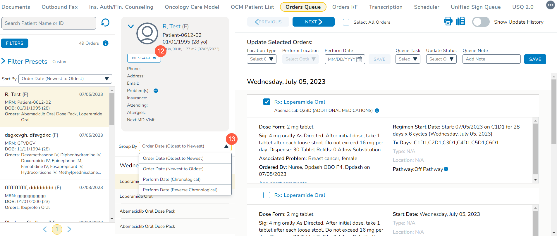 - Perform Date: view orders by when they should be fulfilled by selecting from All, STAT/ASAP/Add-On, Next 14 Days, Next 30 Days, Next 90 Days, a Custom range, and/or Include Last 90 Days