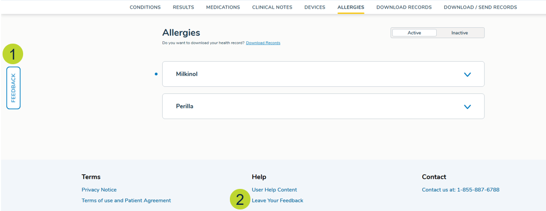 • Leave Your Feeback link will display in the footer across the portal (callout 2).