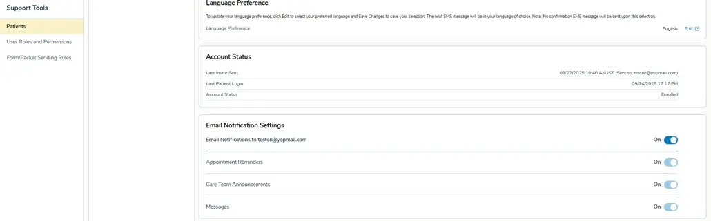 Practices can also resubscribe patients through Support Tools > Patients > Email Notification Settings.