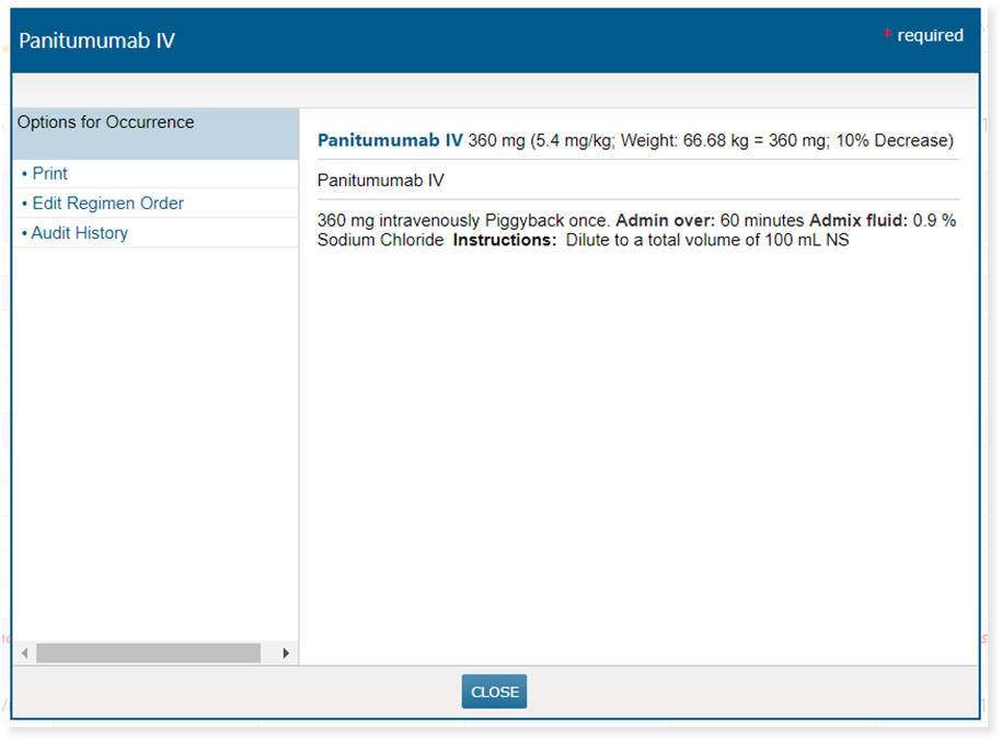 When a drug dose is edited using the Percentage change portion of the dose calculator, the percentage changed will now display everywhere the full detail of the saved order displays. This can help clinicians better understand a patient’s course of treatment.