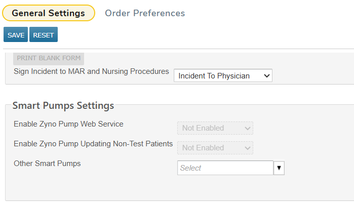 A new Smart Pumps Settings section will be available in the Practice Preferences area. These preferences will allow your practice to set up the foundation for smart pump integration, including support for Zyno infusion pumps and other brands.