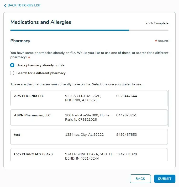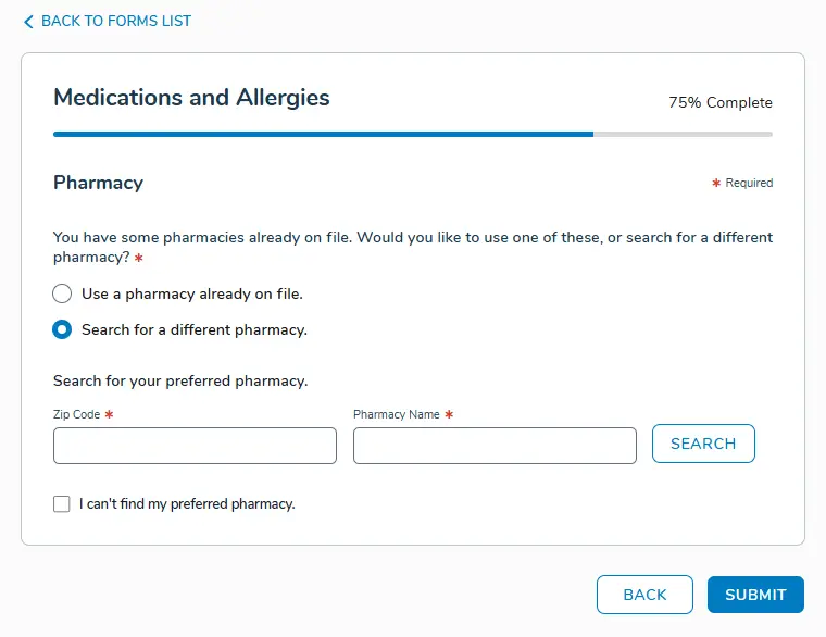 To streamline form completion and enhance consistency, the Medications & Allergies form will pre-populate with the patient’s preferred pharmacy from iKnowMed. This integration reduces manual entry time for patients and aligns data across the EHR and patient portal.