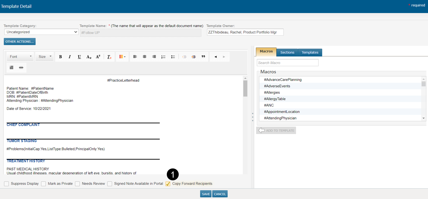 The new Copy Forward Recipients setting for clinical note templates saves providers a step by automatically adding recipients from the most recently sent note to the current note.