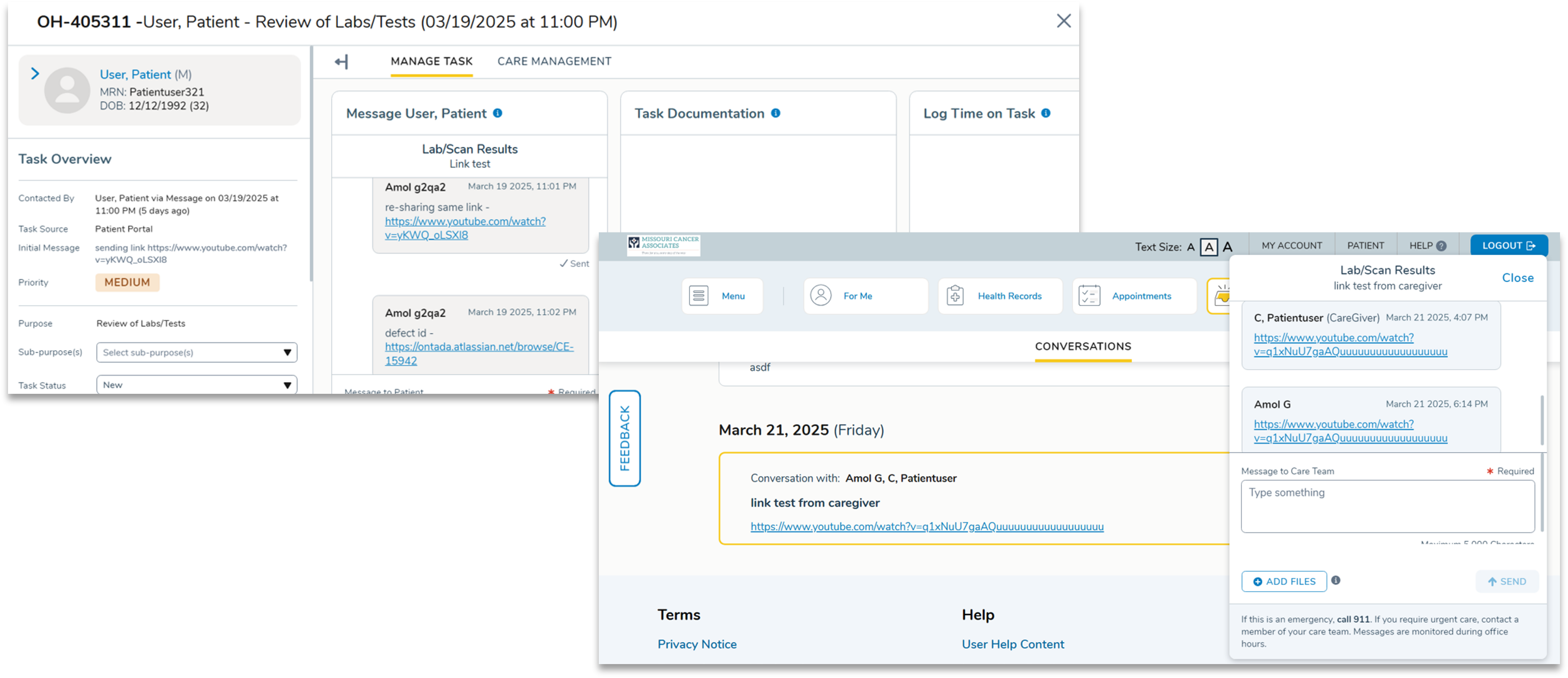 Patients can also include hyperlinks in messages they send to their care team through the portal.