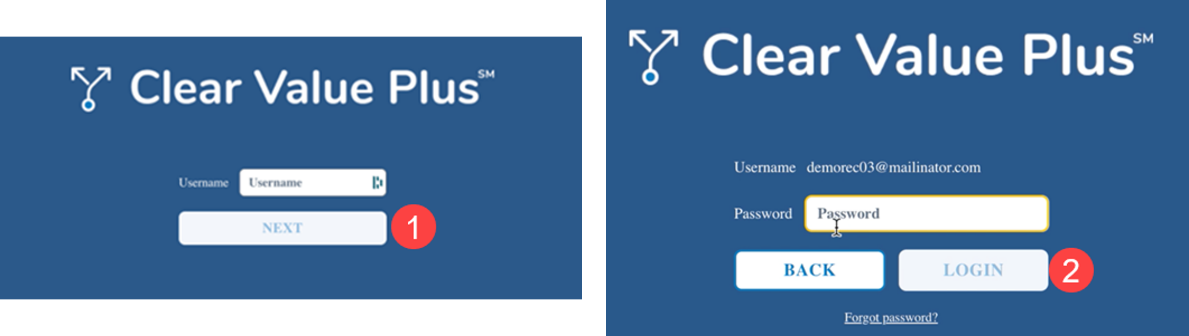 1. Enter your username on the first screen and click the Next button (see callout 1).