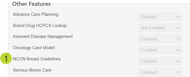 - Set the NCCN Breast Guidelines preference to Enabled (callout 1).