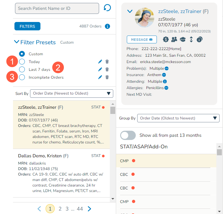 We have revamped the Filter Presets in the new Orders Queue to simplify order management for new users of the Orders Worklist. Three pre-built presets are now available to users who have not created any presets. The prebuilt presets will eliminate the need for each new user to create presets when they begin to use the worklist.