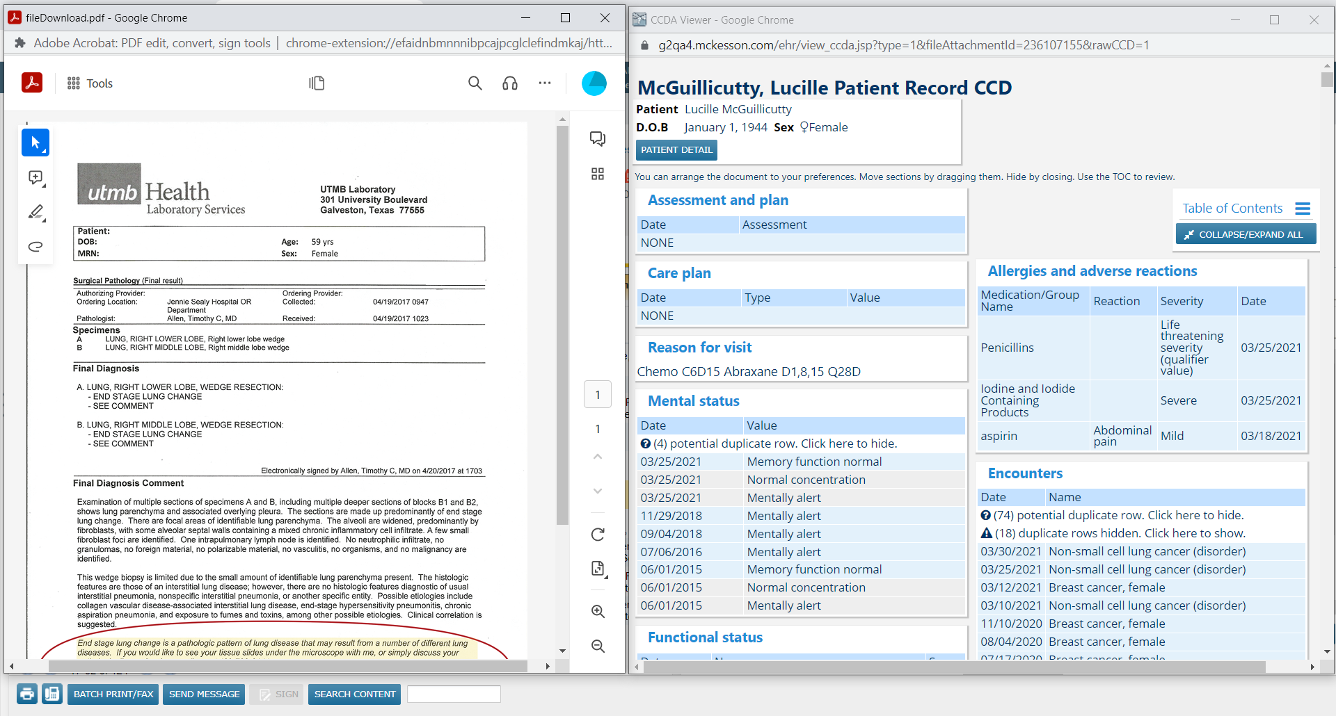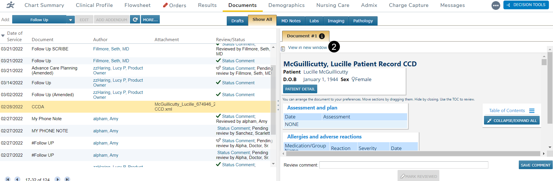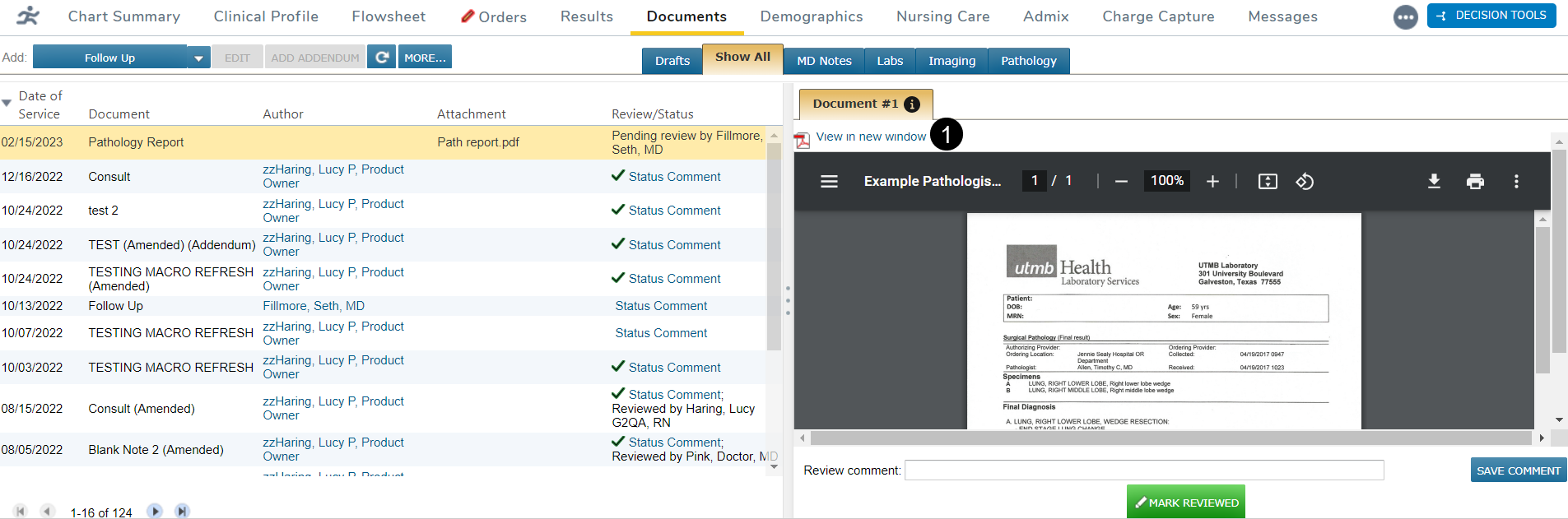 You can now open multiple documents, such as items scanned or attached, for a patient and review them side-by-side on one screen in the Documents and Results tabs.
