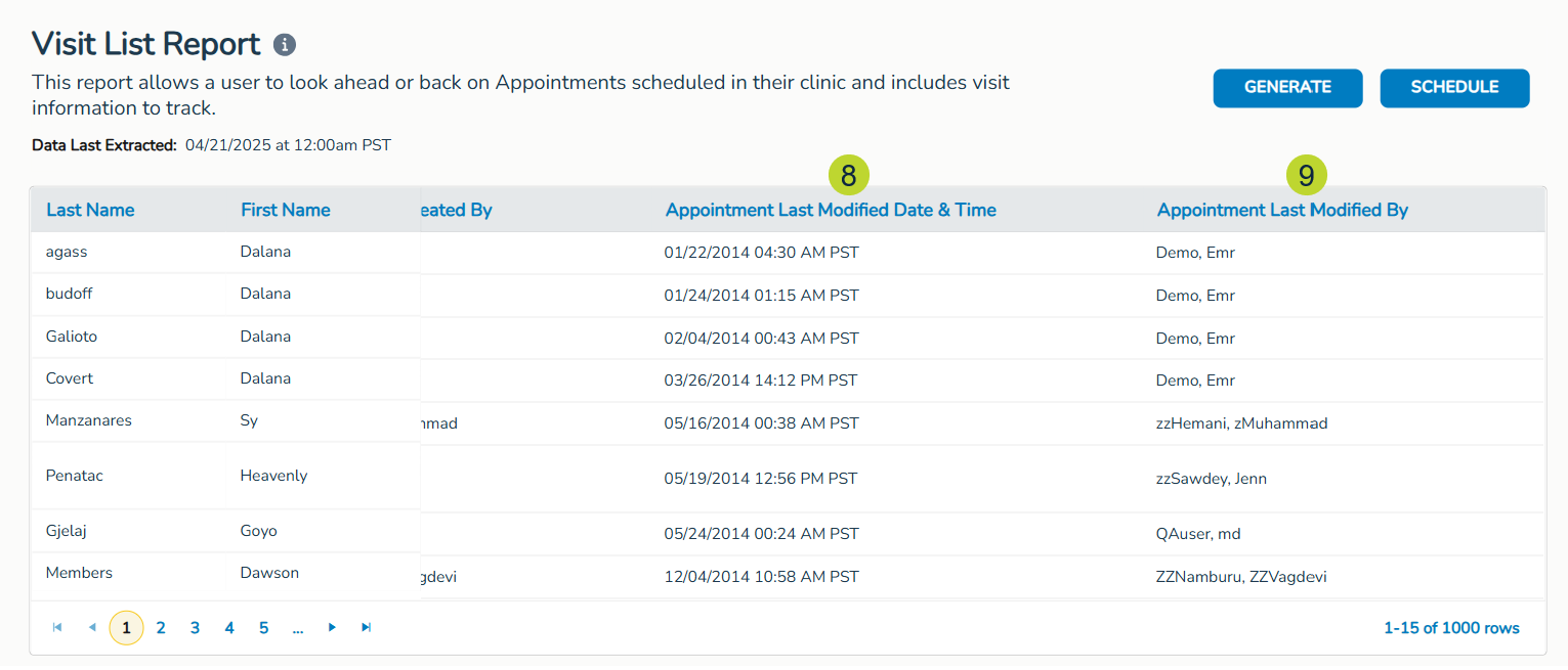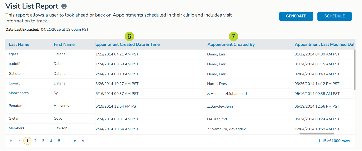 To enhance your ability to track productivity and audit activity, we’re also adding the following appointment-related columns (callouts 6-9):